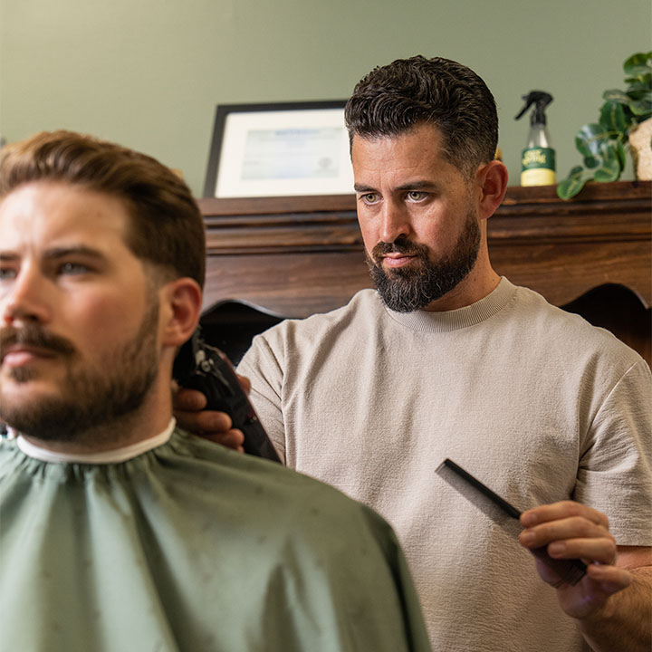 Barbering has been a part of Chase’s life since he was a kid. He was the one lining up his friends in the garage before school dances, buzzing heads for pizza and laughs. After years in the restaurant industry, he felt an urge to pursue a dream more in alignment with his passion. So in 2015, he enrolled in barber school, and in 2017 he opened his first shop in Livermore, California. Chase poured his heart into every cut and as result the business grew rapidly.