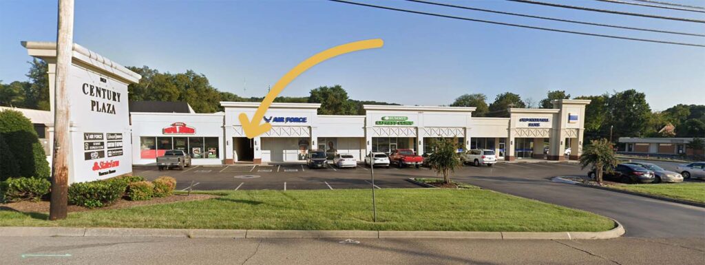As you enter our parking lot from Kingston Pike (US 11), you will see a Papa John’s Pizza and an Air Force Recruiting Center. We are located in the breezeway between these two stores. Walk into the breezeway and we are three doors down on your left.